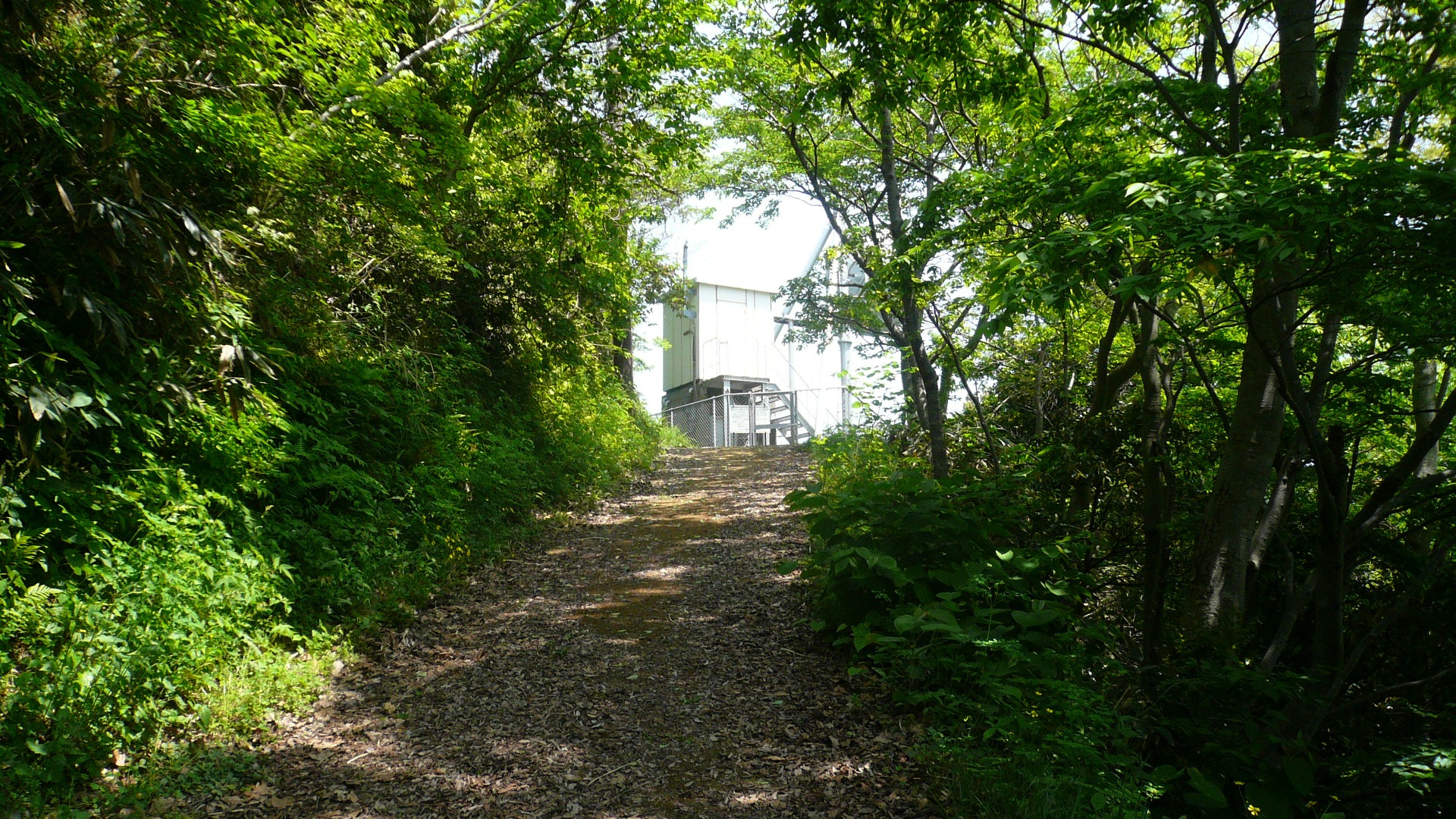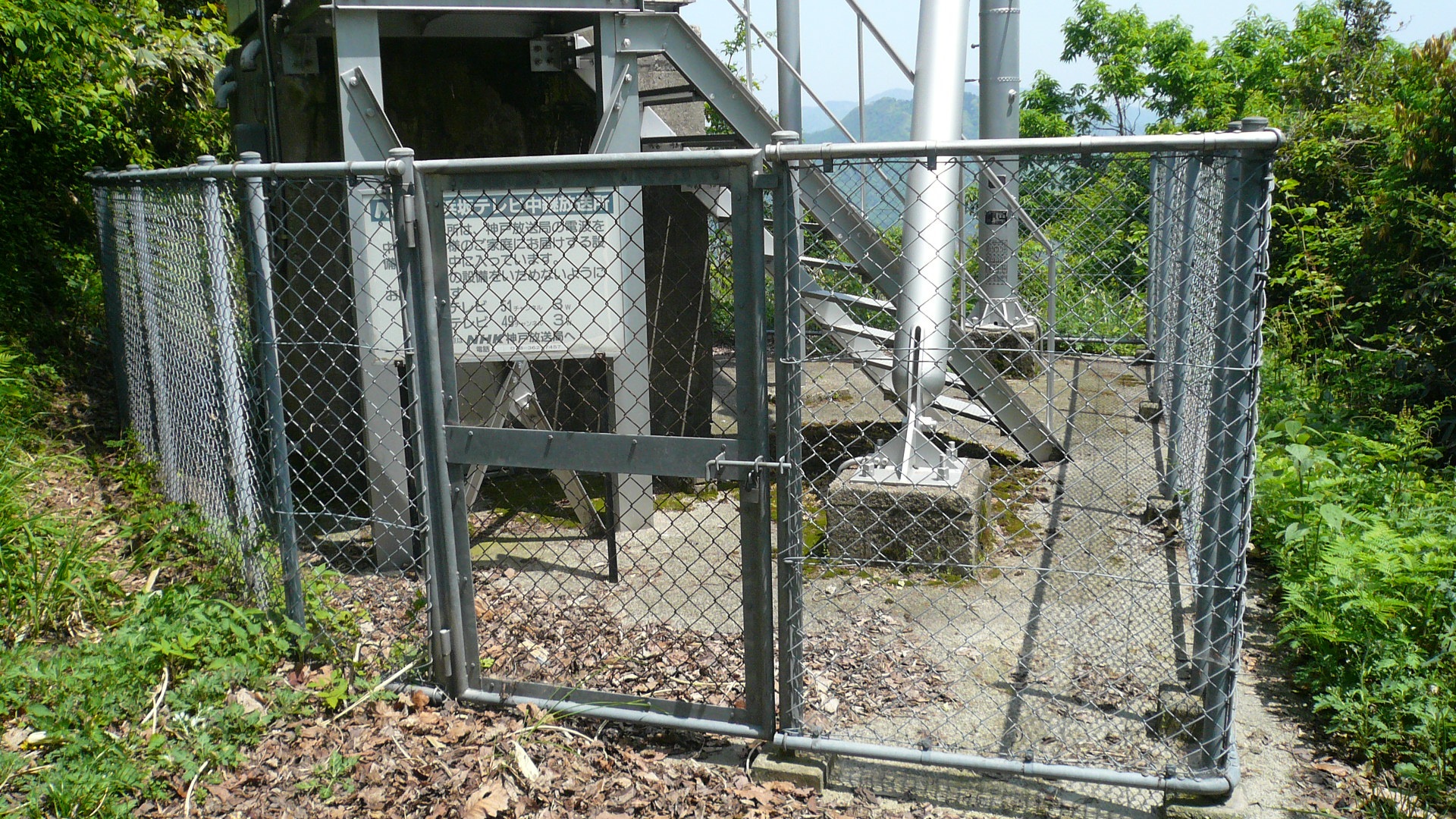 ずっと登っていくとまずはじめに、NHKの中継局があります。民放の中継局よりも少し低い位置にあります。そして、NHKの中継局からほんの少し登ると城山園地の山頂になります。