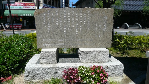 JR城崎温泉駅の駅前にある城崎恋歌歌碑。